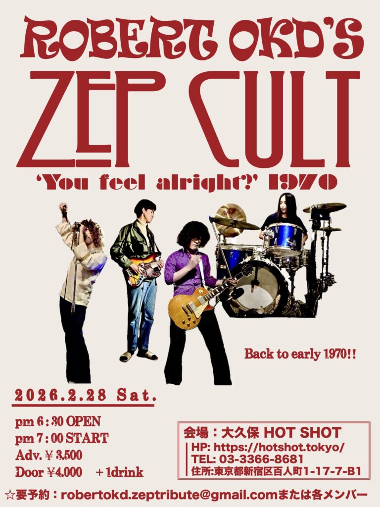 さて、第三弾のCultプロジェクトは、ギターとドラムに引き続きKoji Takai (ex. Zepage) とJoe Bonham、Ba. & Key.には新顔Dan Paul Jonesを迎えます。2025年に日本でも公開されたBecoming Led Zeppelinでも取り上げられた1月のRoyal Albert Hall公演から3月の北米ツアーの時期に焦点を当てたライブになる予定です。